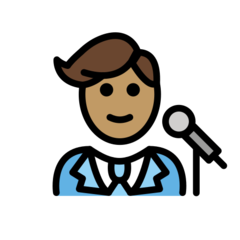| Codepunkt | U+1F468 1F3FD 200D 1F3A4 |